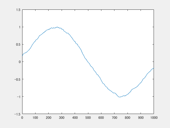 plot(t,Data(:,2)Data(:,1)に対してrandで生成した乱数を足しています。引数のlength(t),1は生成する乱数のサイズを指定しています。